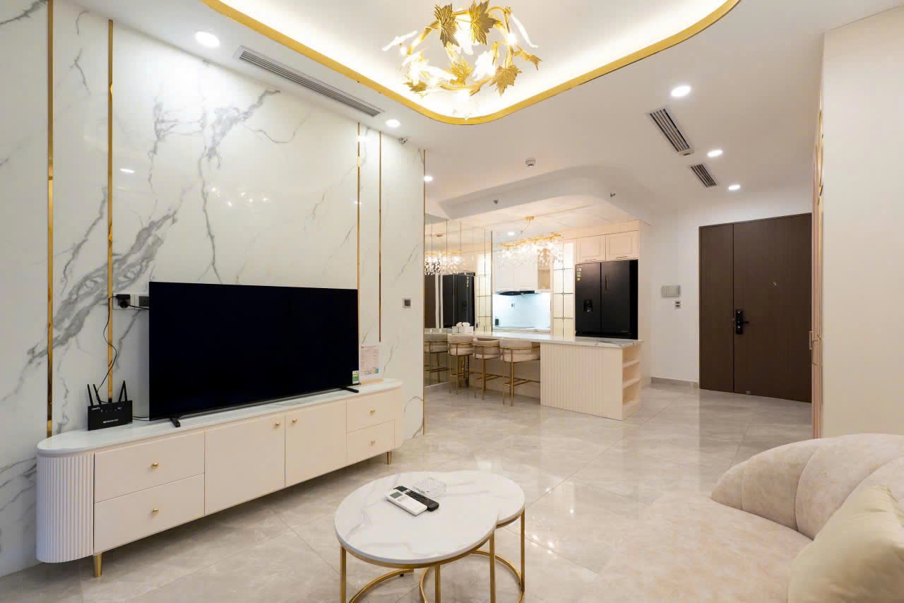 Căn hộ có diện tích 80m², thiết kế tối ưu công năng với 2 phòng ngủ rộng rãi, phòng khách thoáng sáng, khu bếp hiện đại và ban công đón gió tự nhiên. Toàn bộ căn hộ được đầu tư nội thất cao cấp, thiết kế tinh tế theo phong cách sang trọng – hiện đại, chỉ cần xách vali vào ở ngay.