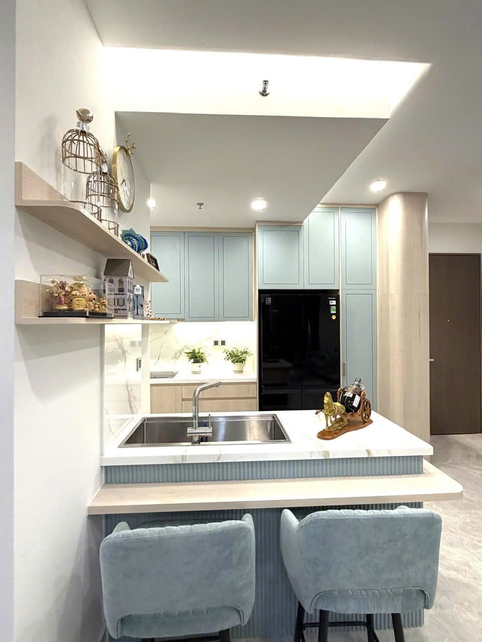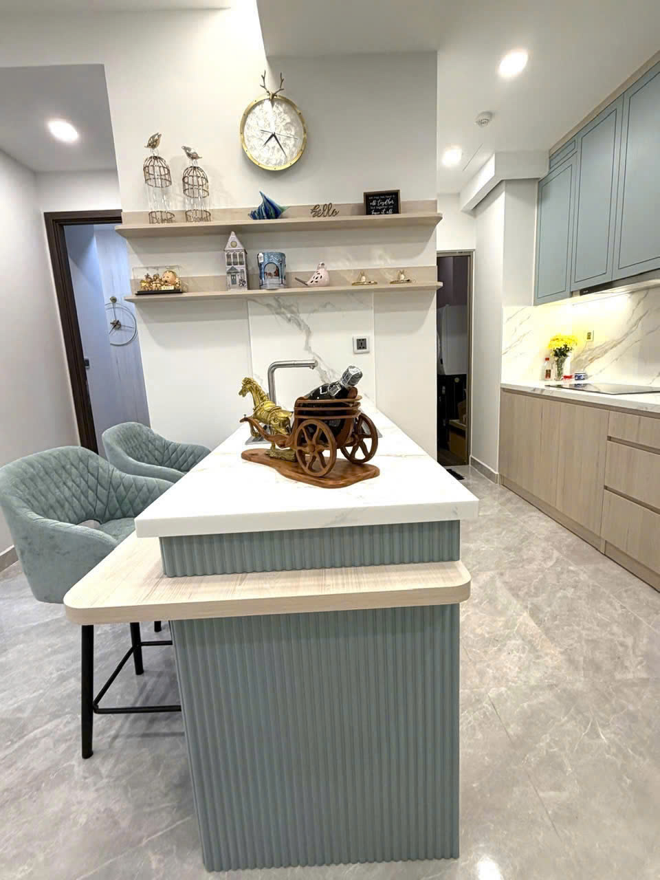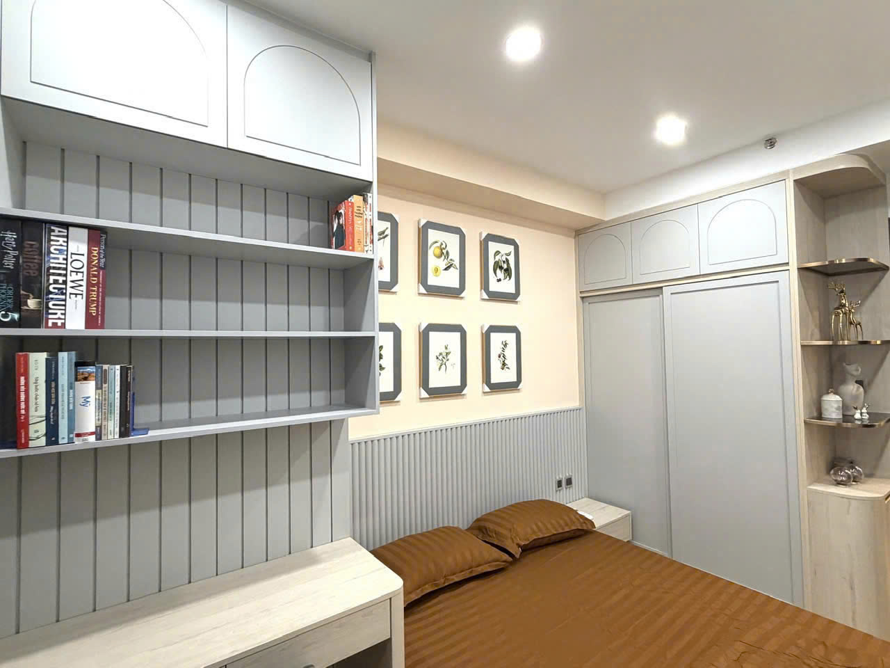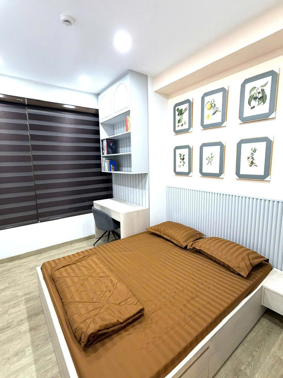 Căn hộ diện tích 80m², thiết kế 2 phòng ngủ rộng rãi, phòng khách thoáng sáng. Nội thất mới 100%, phong cách hiện đại, tông màu sang trọng, có thể dọn vào ở ngay.