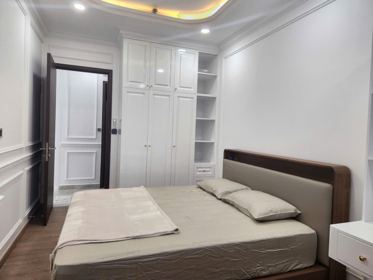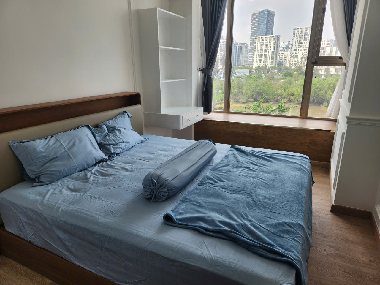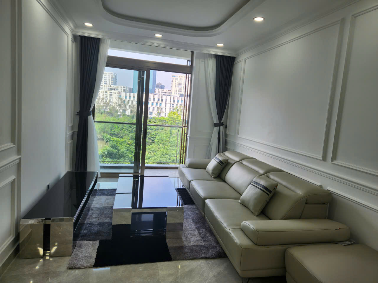 Diện tích 124m², thiết kế 3 phòng ngủ, 2 phòng vệ sinh rộng rãi. Căn hộ được trang bị full nội thất hiện đại, bố trí hài hòa, tối ưu công năng sử dụng. Phòng khách kết nối ban công thoáng, đón ánh sáng tự nhiên và gió mát.