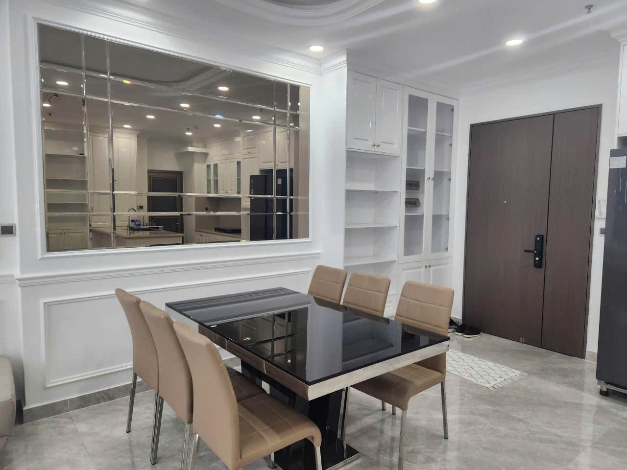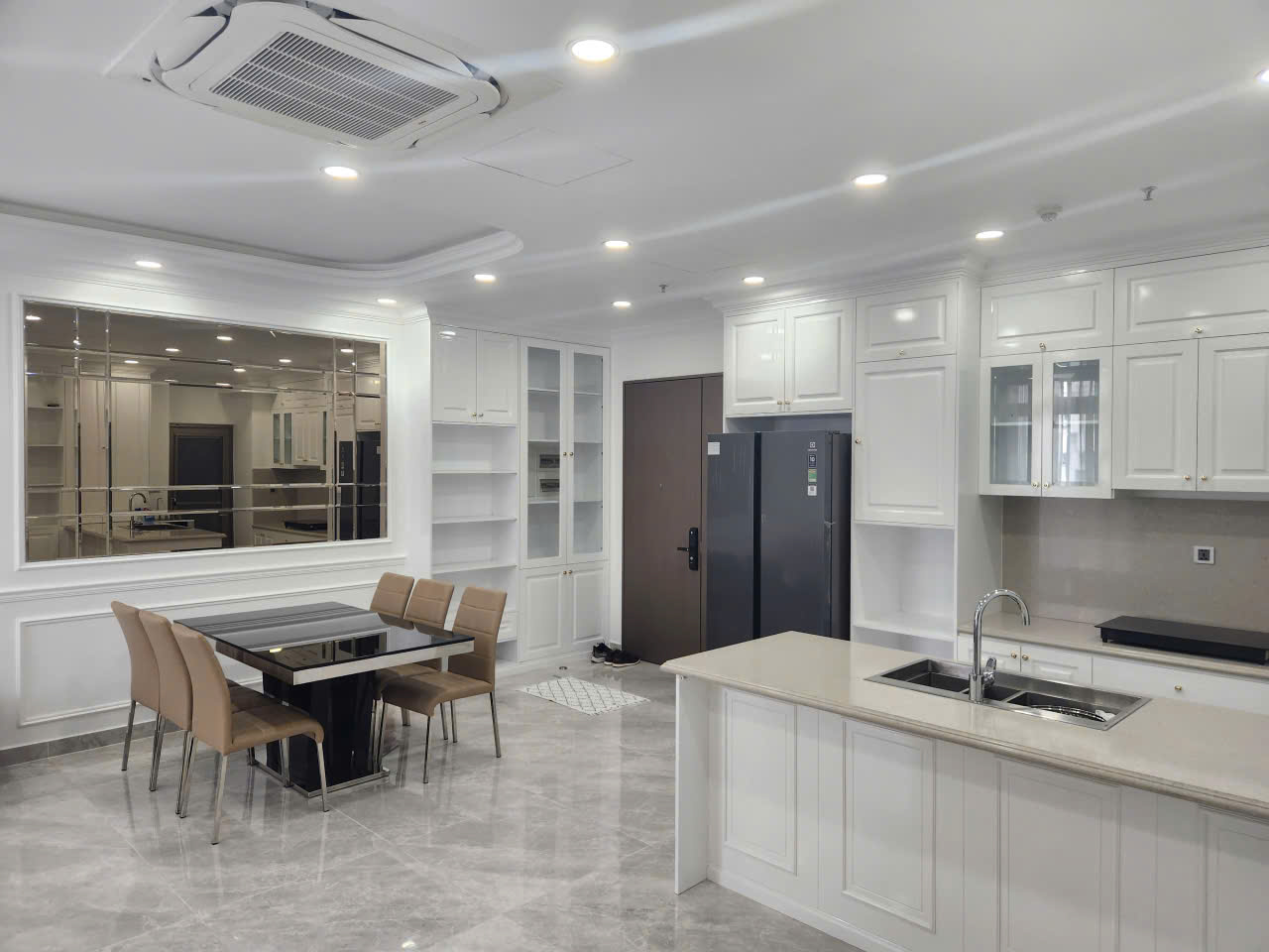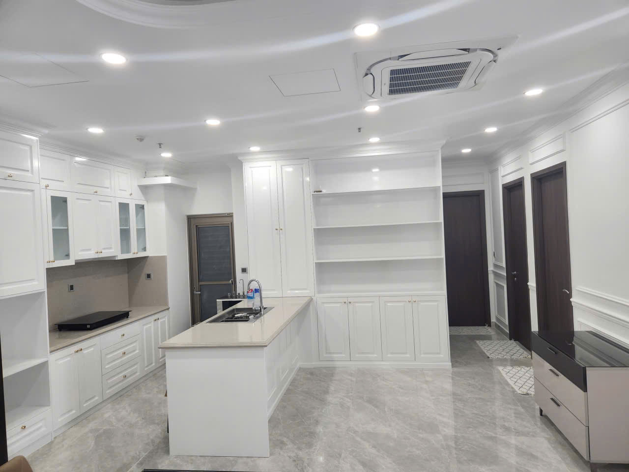 Diện tích 124m², thiết kế 3 phòng ngủ, 2 phòng vệ sinh rộng rãi. Căn hộ được trang bị full nội thất hiện đại, bố trí hài hòa, tối ưu công năng sử dụng. Phòng khách kết nối ban công thoáng, đón ánh sáng tự nhiên và gió mát.
