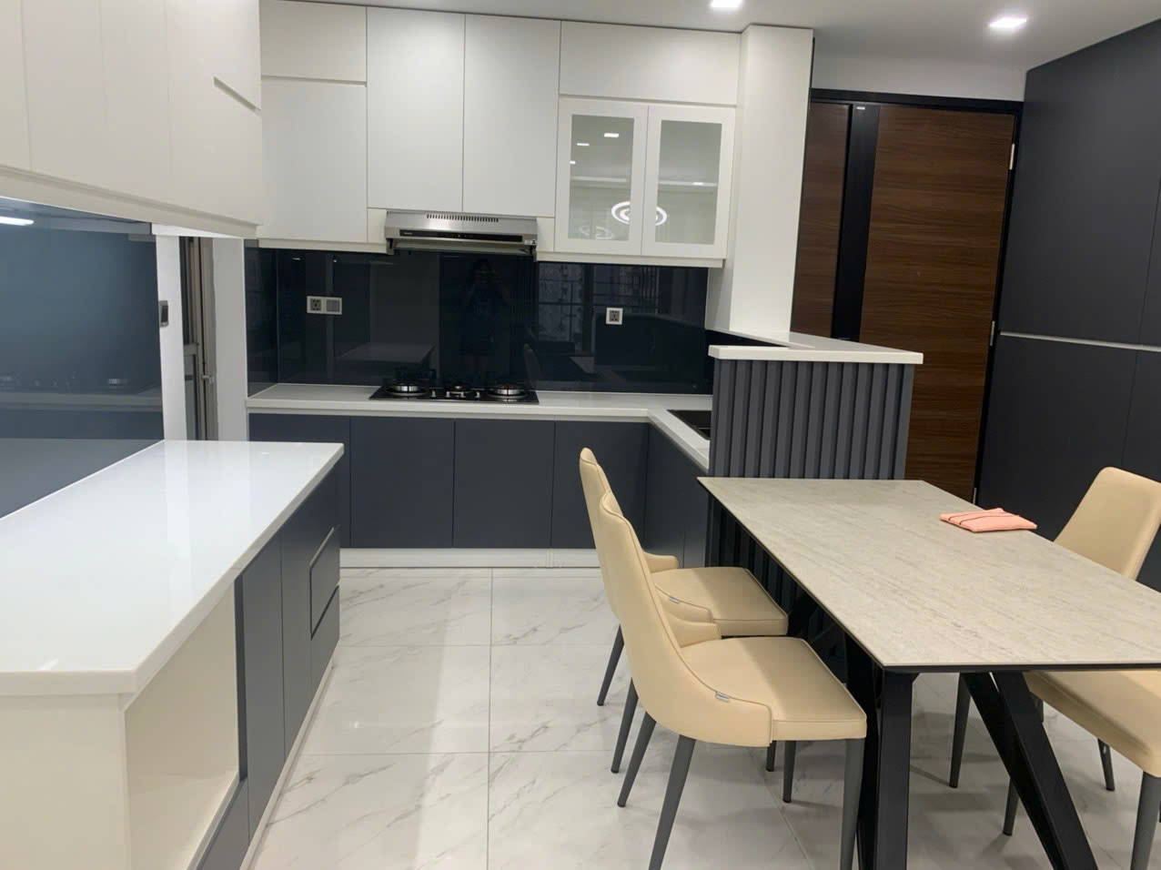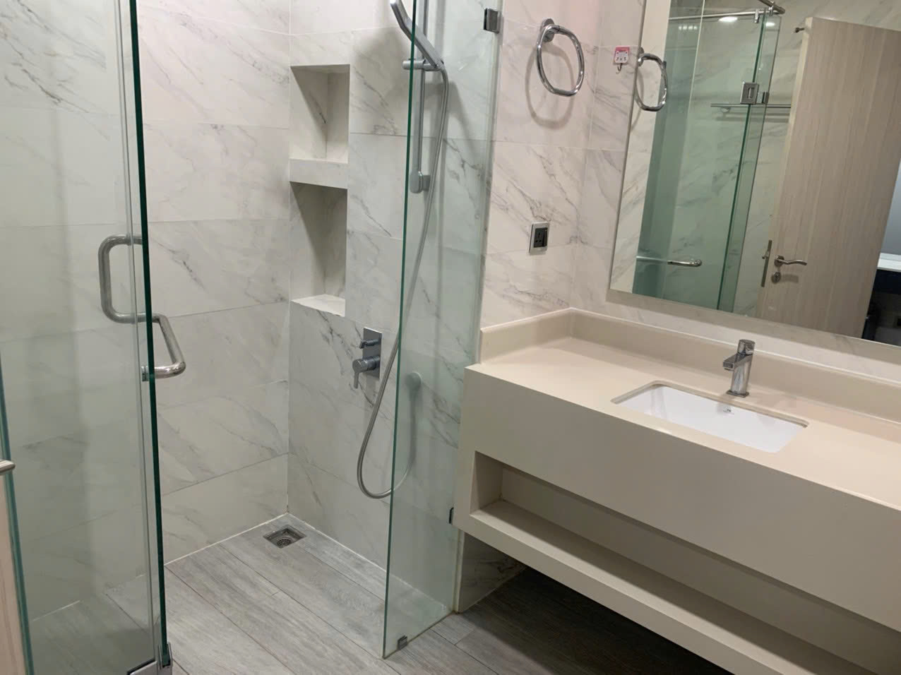 Nội thất được trang bị đầy đủ và cao cấp, phong cách hiện đại – sang trọng, sử dụng vật liệu chất lượng cao. Phòng tắm được thiết kế tinh tế với bồn tắm nằm, mang lại trải nghiệm thư giãn như resort ngay tại nhà. Ngoài ra, căn hộ còn có ô đậu xe riêng, rất thuận tiện cho gia đình sinh sống lâu dài.