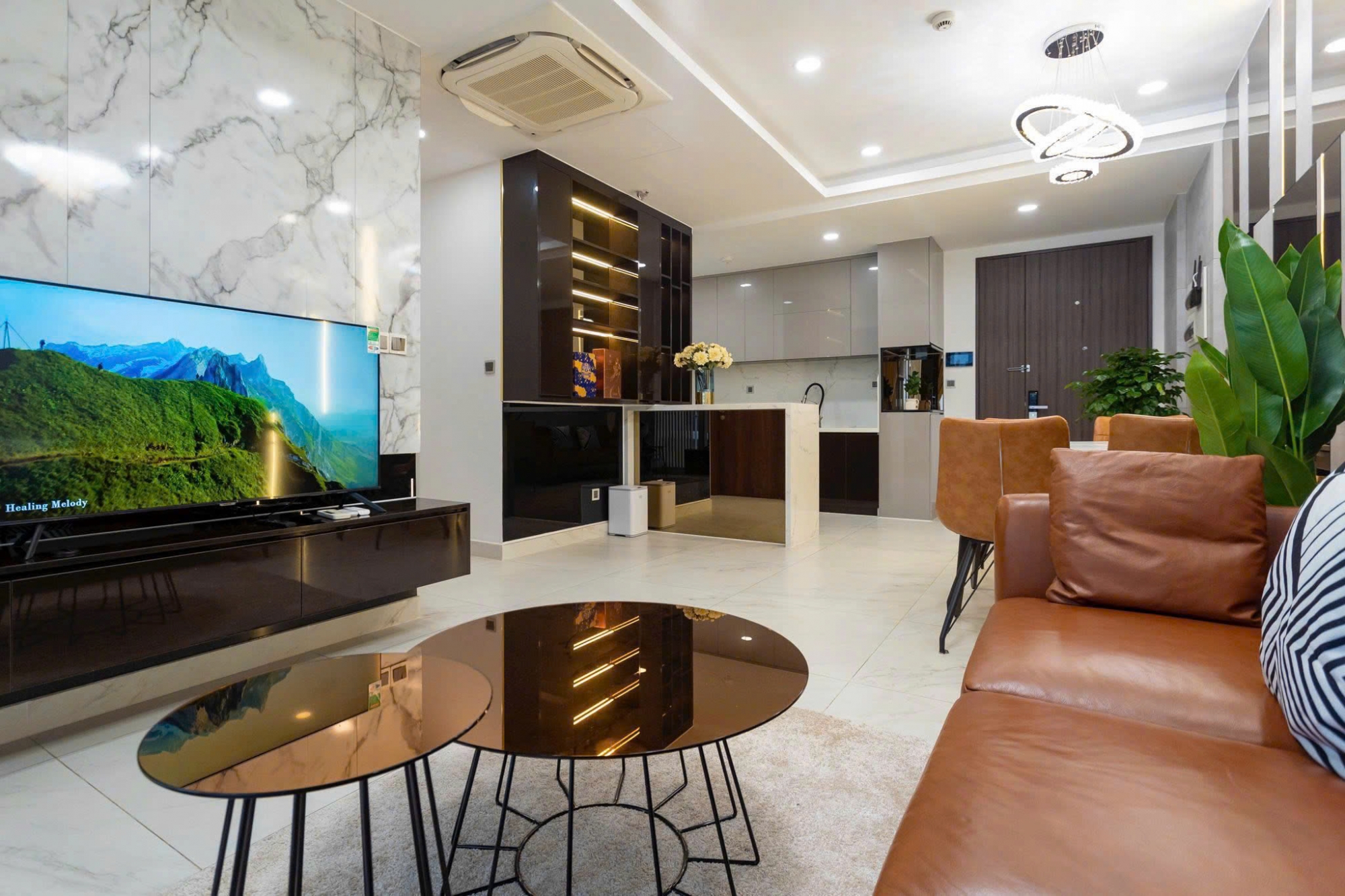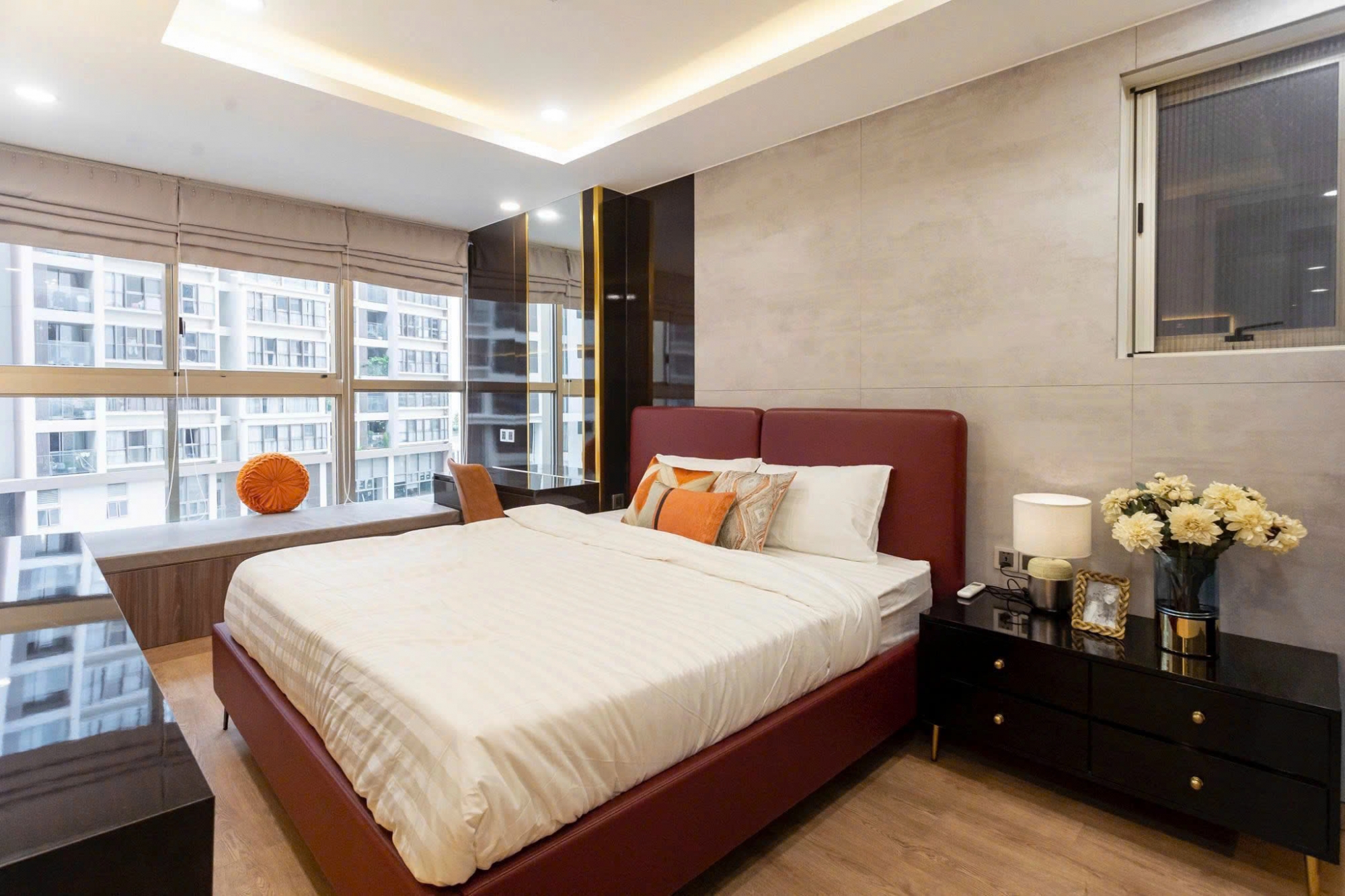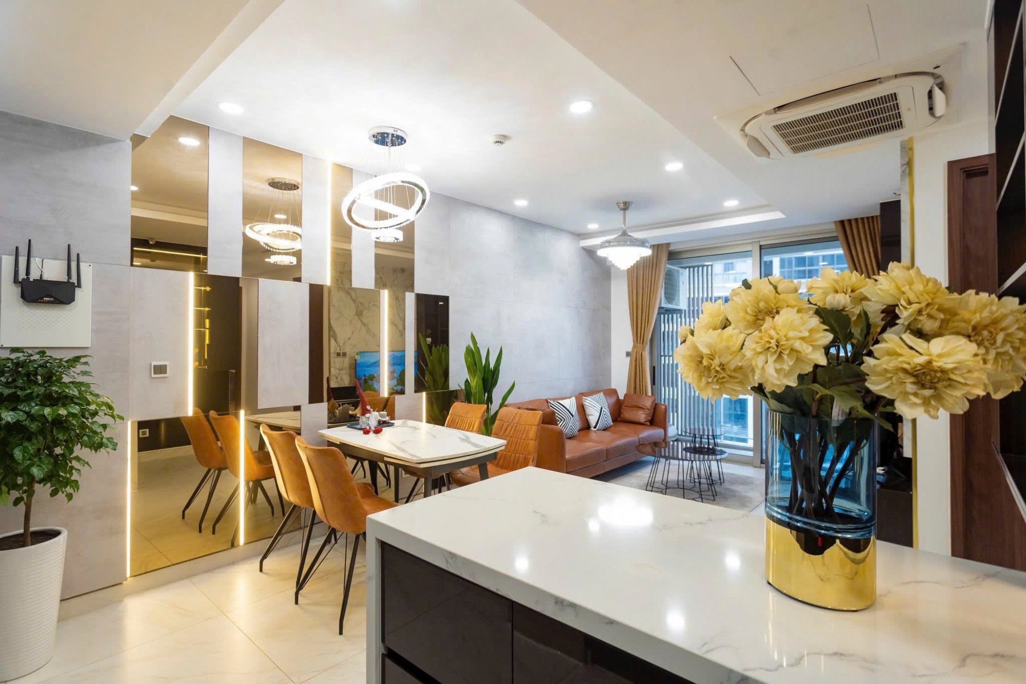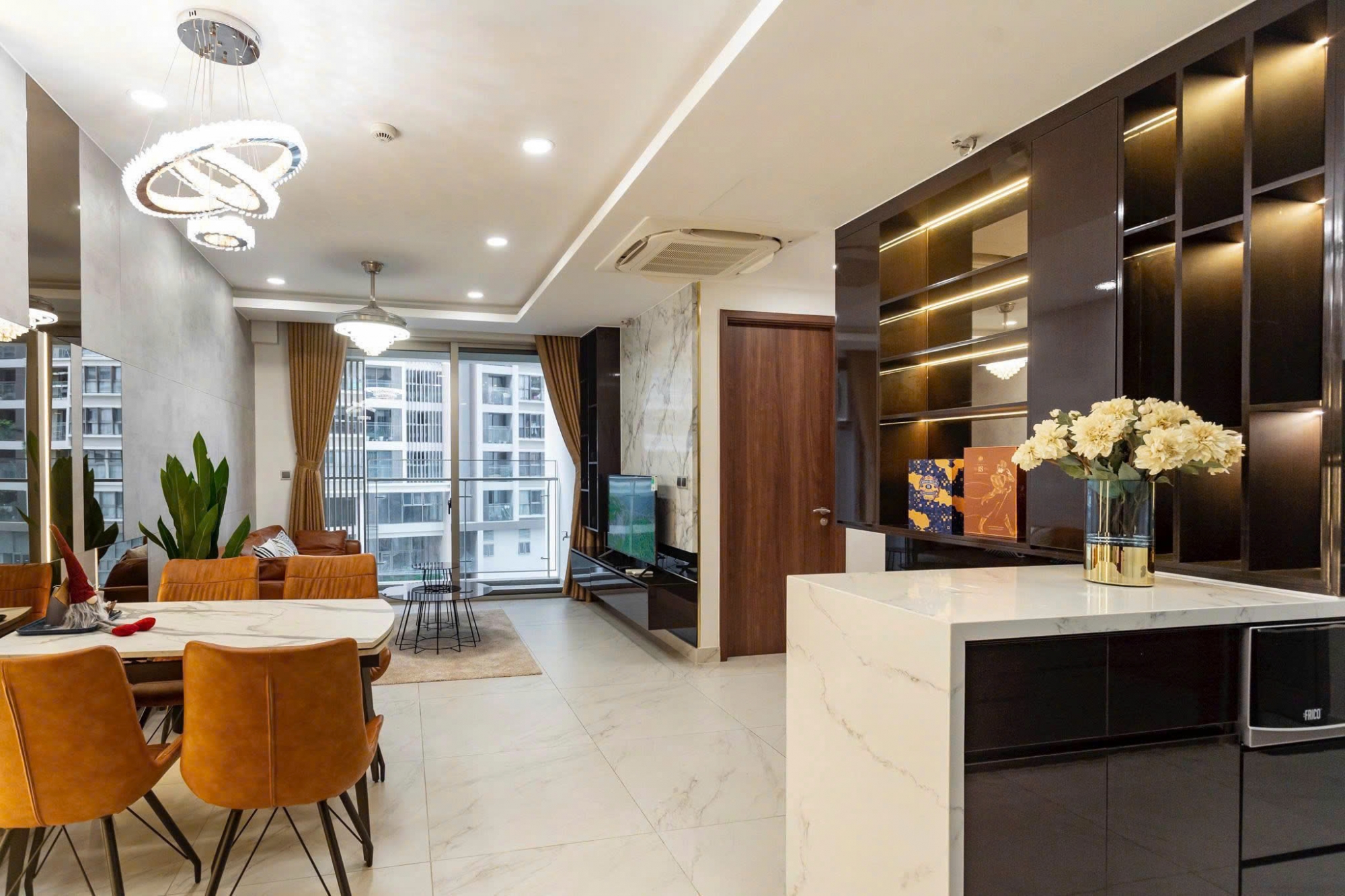 Căn hộ 2 phòng ngủ tại Midtown Phú Mỹ Hưng sở hữu thiết kế hiện đại với không gian sống rộng rãi và thoáng đãng. Phòng khách kết hợp khu bàn ăn sang trọng, nội thất đồng bộ tạo cảm giác ấm cúng và tinh tế. Ban công đón ánh sáng tự nhiên giúp căn hộ luôn sáng và thông thoáng.