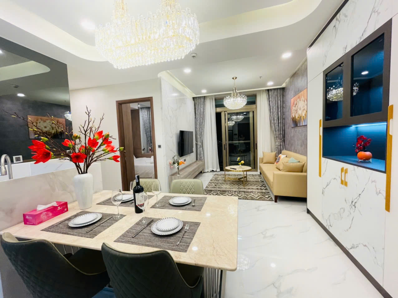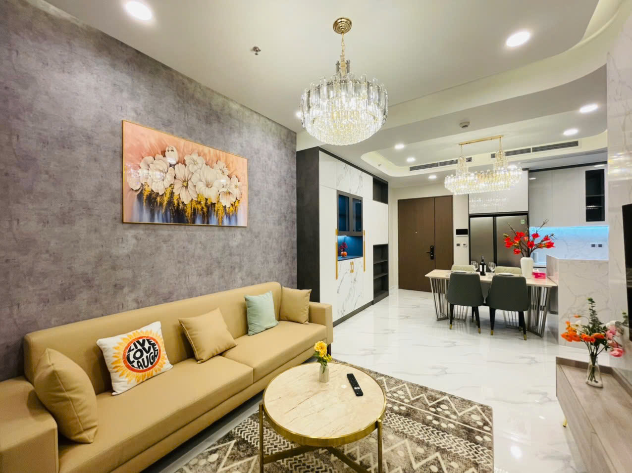 Phòng khách rộng rãi kết hợp bếp tiện nghi, các phòng ngủ bố trí hợp lý, ban công view thoáng mát là nơi lý tưởng để thư giãn và tận hưởng không khí trong lành. Nội thất hiện đại mang đến sự tiện nghi tối đa và tính thẩm mỹ cao cho căn hộ.