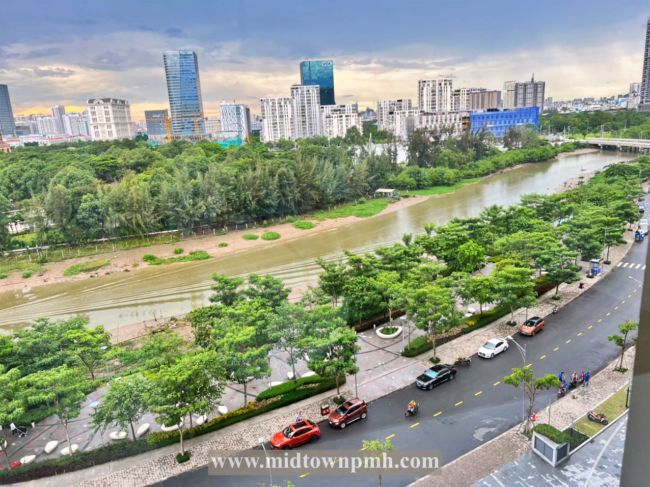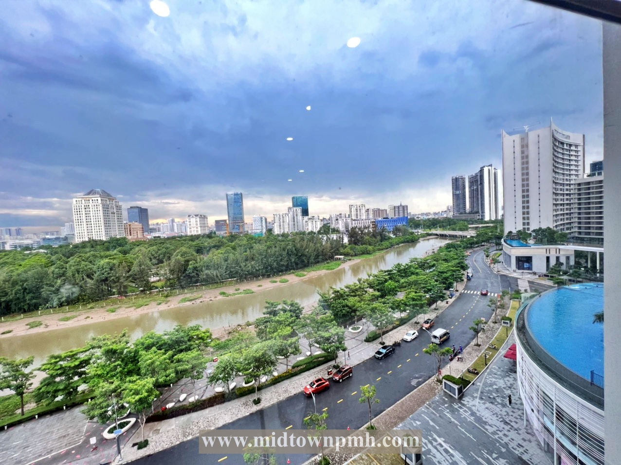 Căn hộ Midtown 3 phòng ngủ cho thuê, không nội thất, view sông, layout đẹp, thiết kế hiện đại.