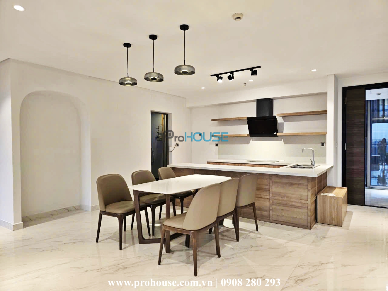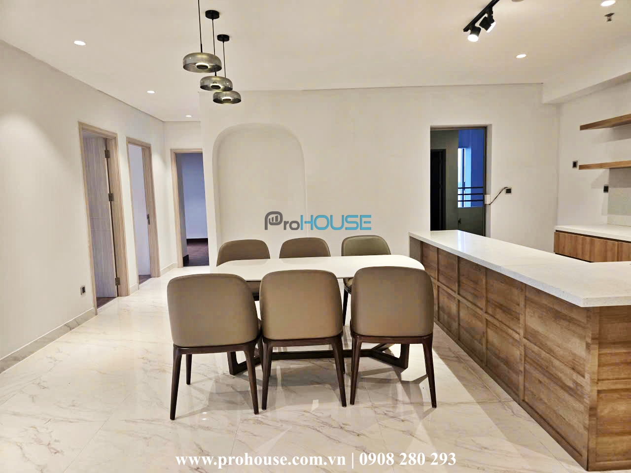 Căn hộ cao cấp cho thuê tại Midtown Phú Mỹ Hưng với nội thất đẹp, view sông, mặt bằng bố trí đẹp với 3 phòng ngủ, 3 phòng tắm, 1 phòng cho người giúp việc và phòng khách rộng.