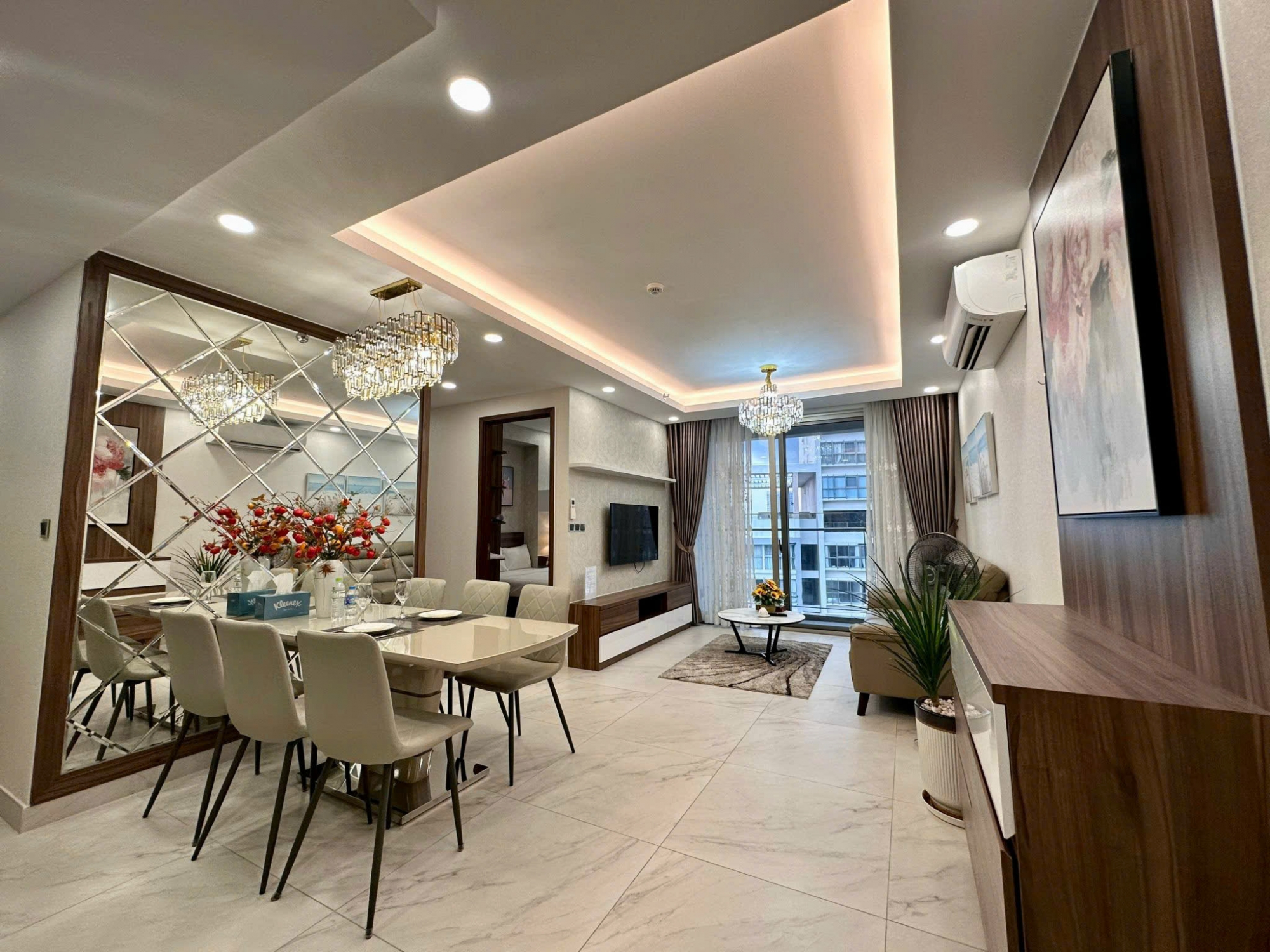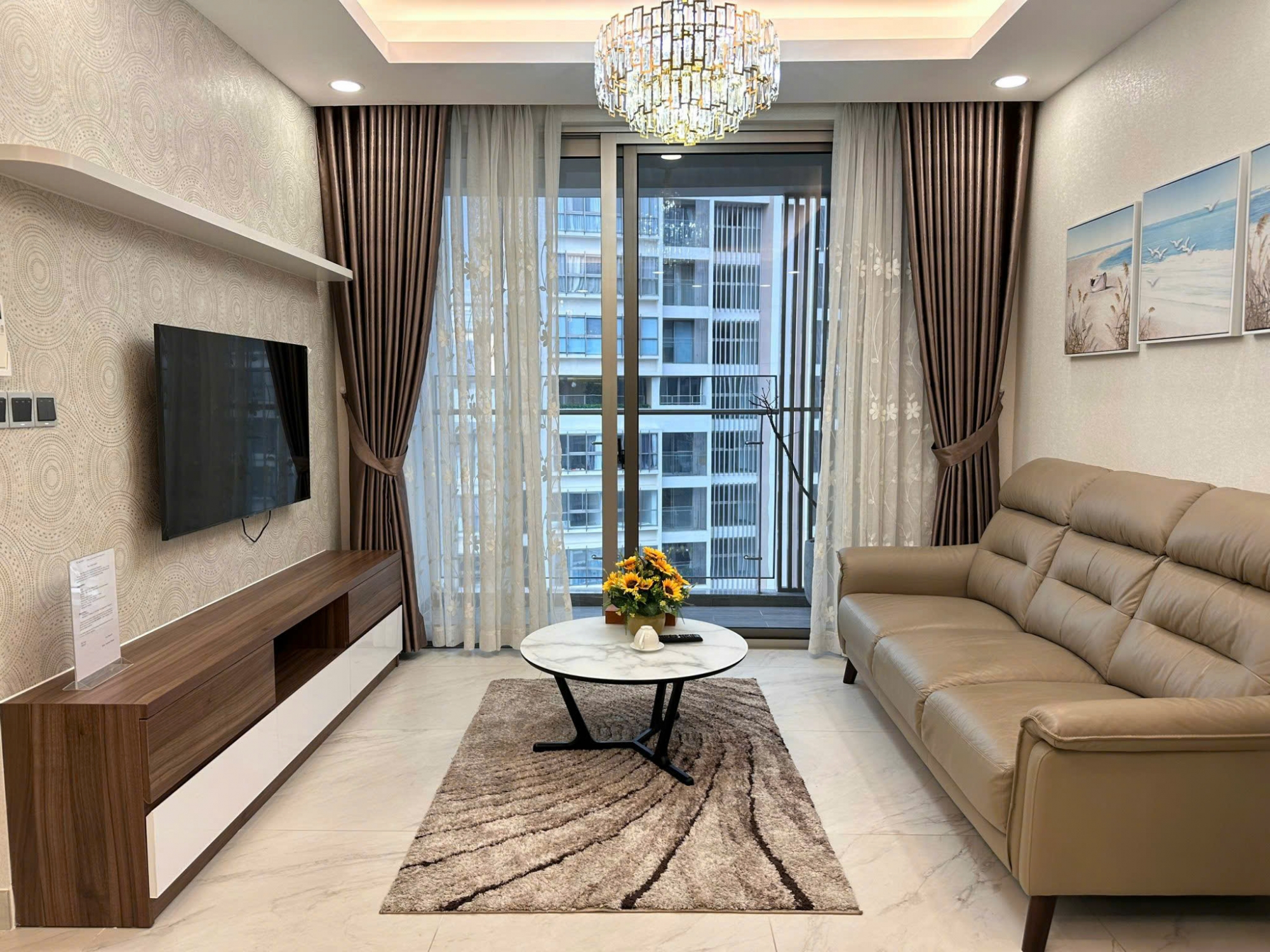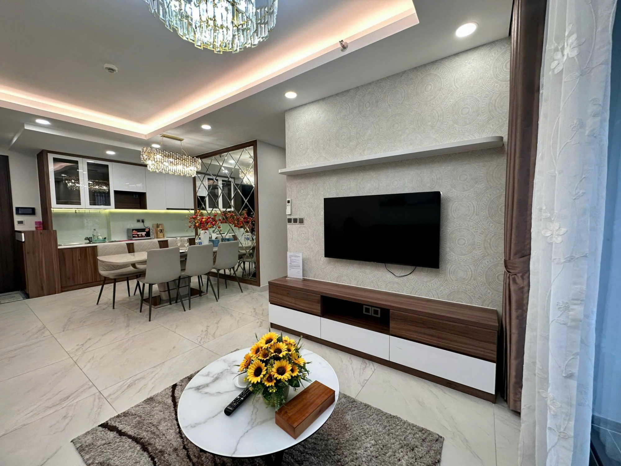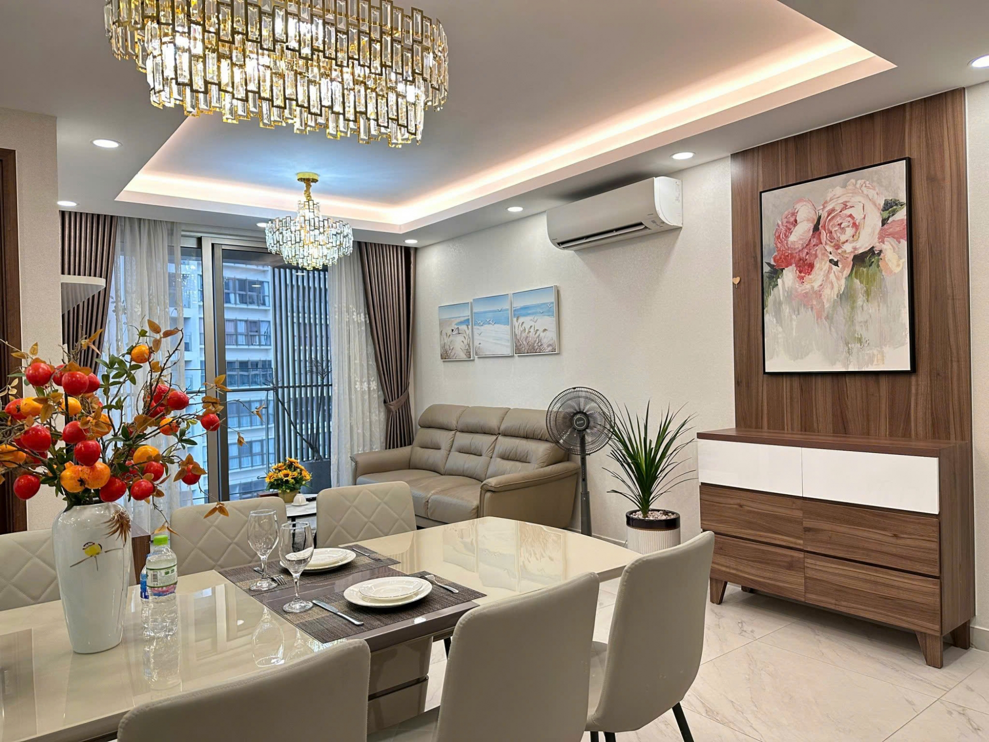 Căn hộ có diện tích 82m², thiết kế 2 phòng ngủ và 2 phòng tắm với bố cục hợp lý, tối ưu không gian sống cho gia đình nhỏ hoặc chuyên gia nước ngoài. Phòng khách rộng rãi, thoáng sáng, kết nối với khu bếp mở hiện đại, tạo cảm giác tiện nghi và ấm cúng. Căn hộ được trang bị đầy đủ nội thất cao cấp, phong cách hiện đại, sẵn sàng dọn vào ở ngay.