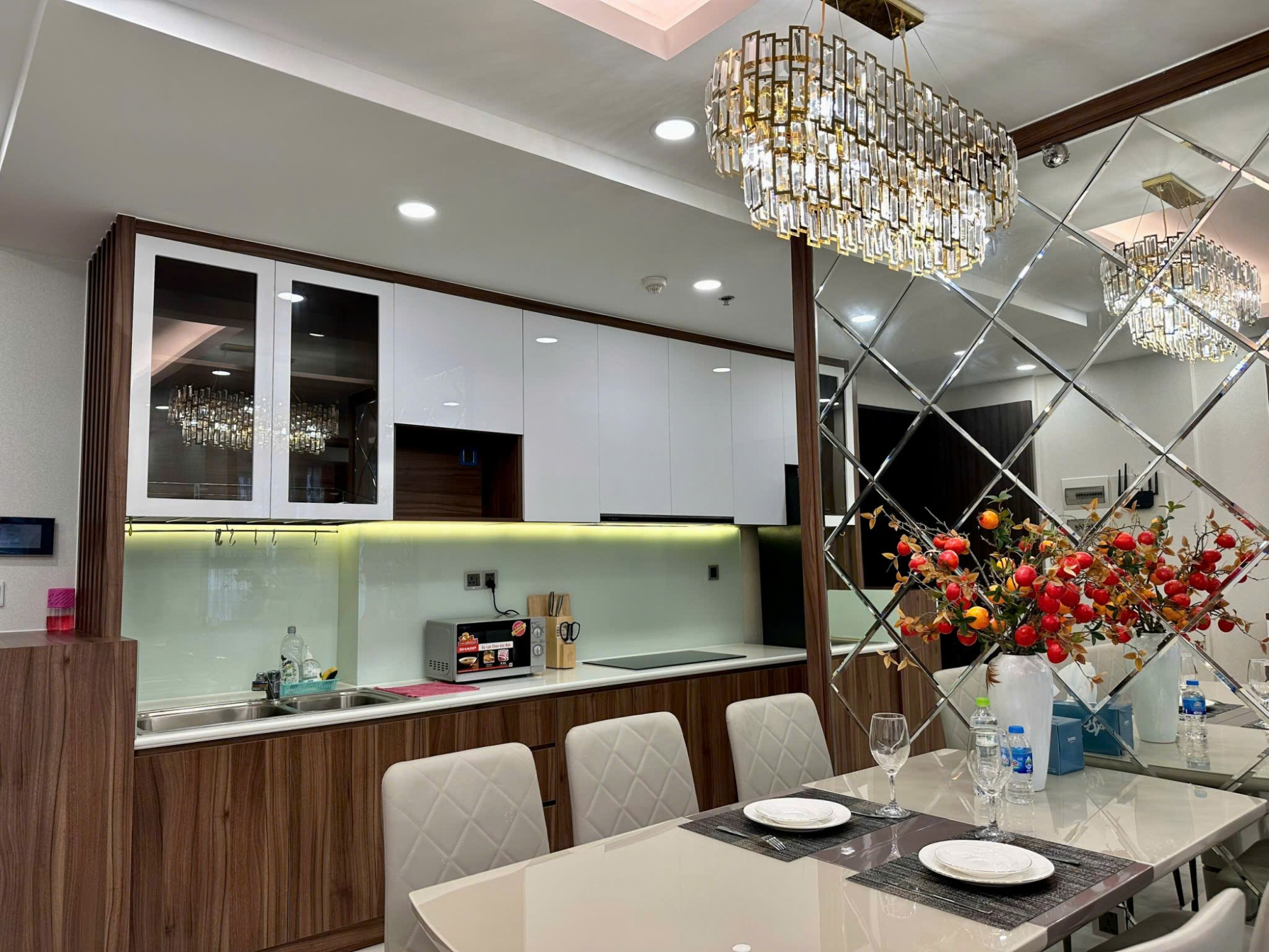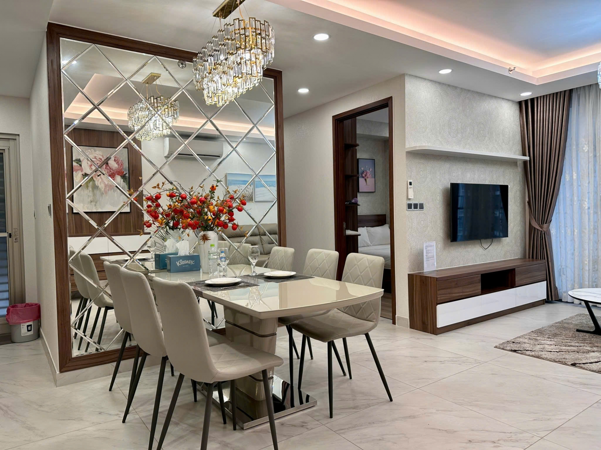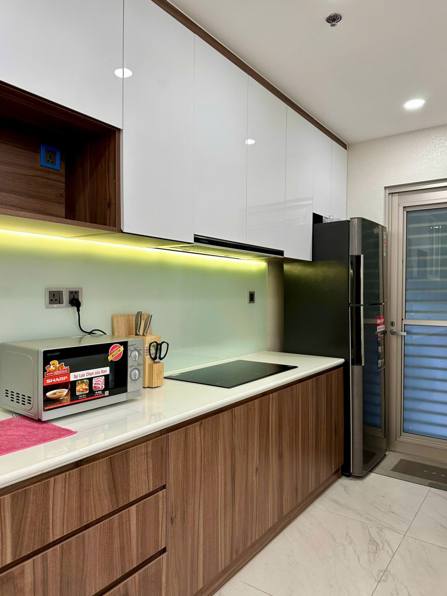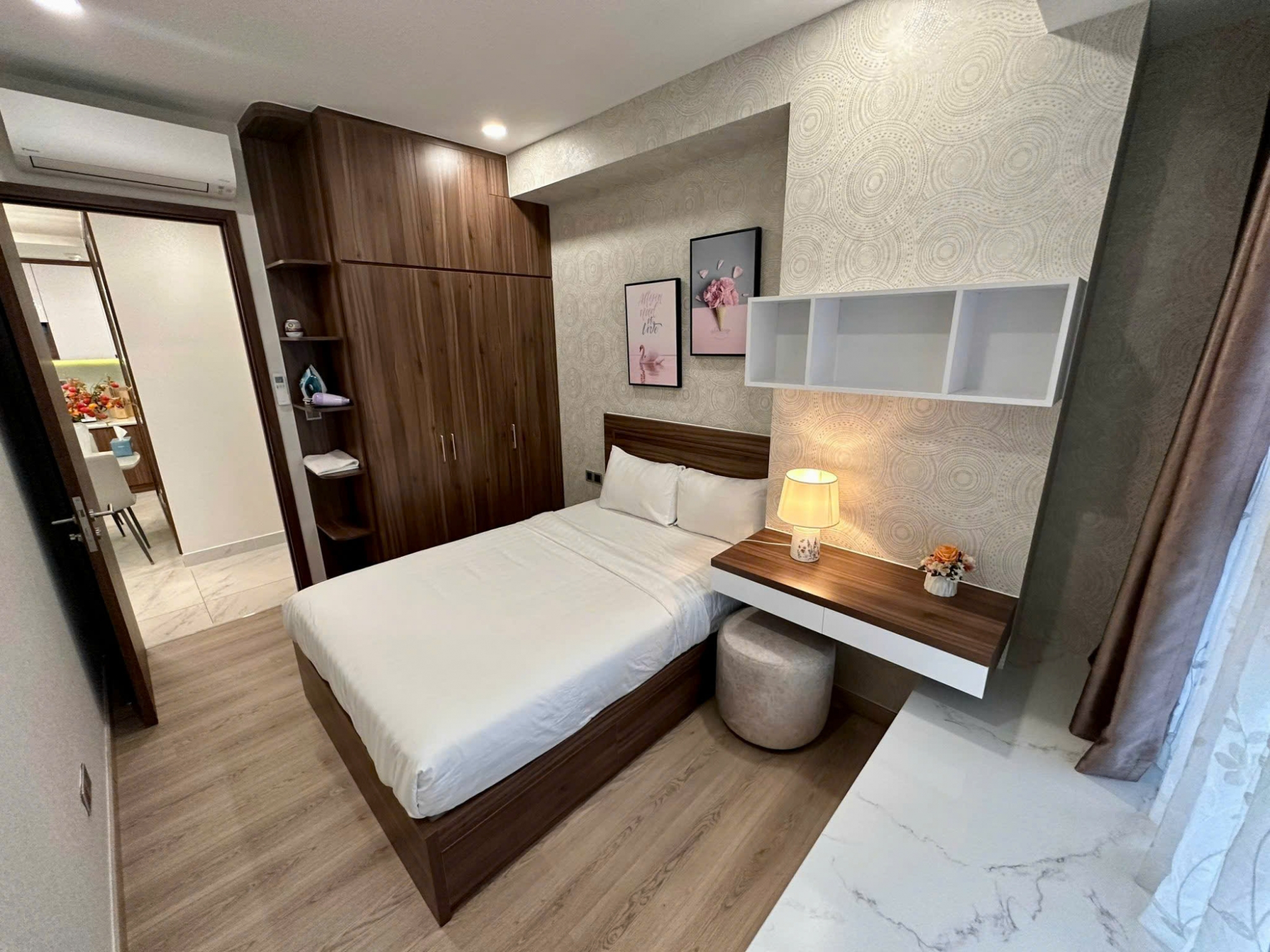 Căn hộ có diện tích 82m², thiết kế 2 phòng ngủ và 2 phòng tắm với bố cục hợp lý, tối ưu không gian sống cho gia đình nhỏ hoặc chuyên gia nước ngoài. Phòng khách rộng rãi, thoáng sáng, kết nối với khu bếp mở hiện đại, tạo cảm giác tiện nghi và ấm cúng. Căn hộ được trang bị đầy đủ nội thất cao cấp, phong cách hiện đại, sẵn sàng dọn vào ở ngay.