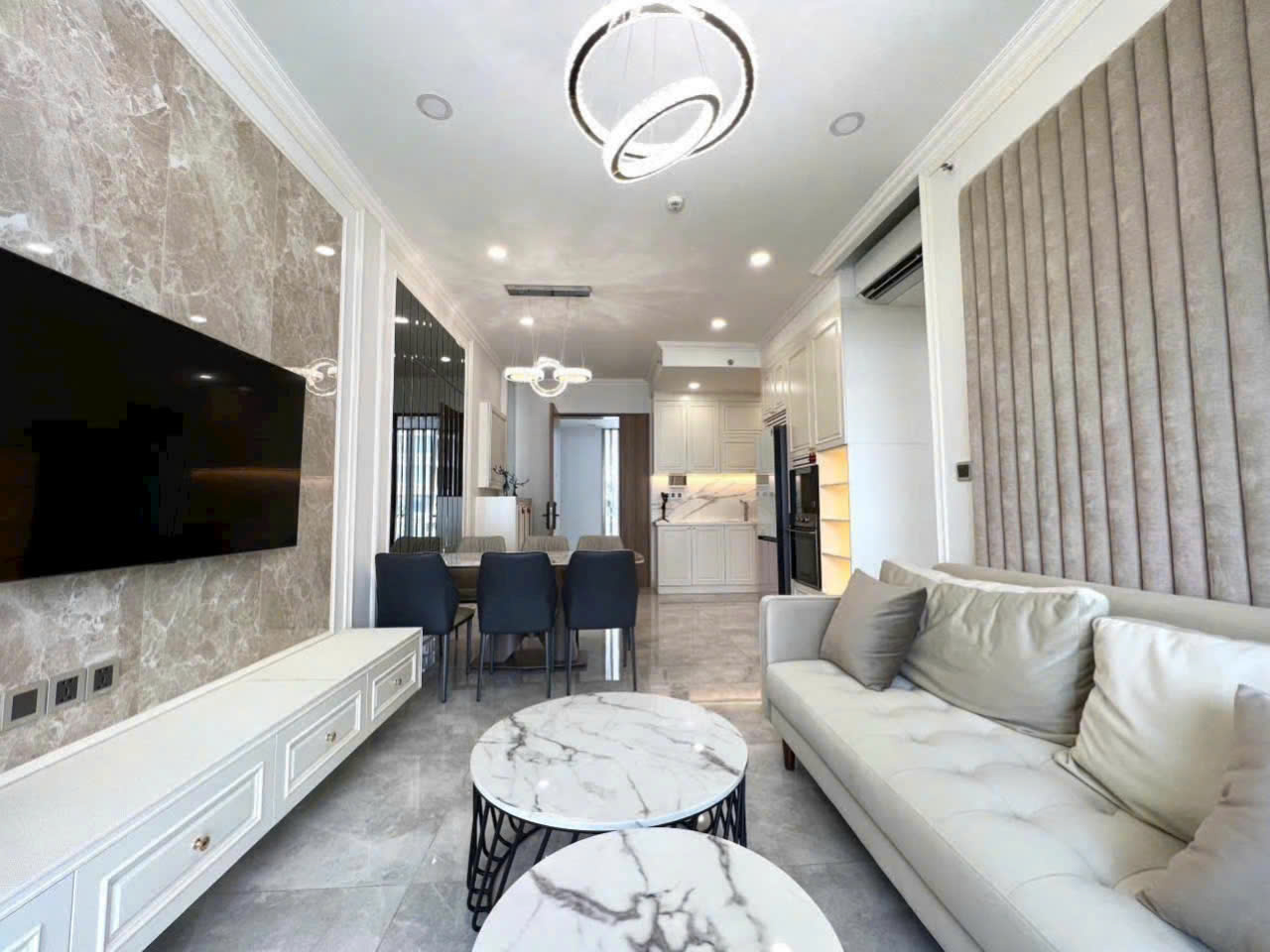 Toàn bộ căn hộ được trang bị full nội thất cao cấp, từ sofa, bàn ăn, giường ngủ, tủ âm tường đến hệ thống bếp hiện đại với thiết bị nhập khẩu. Nội thất được lựa chọn kỹ lưỡng theo phong cách sang trọng – tinh tế – hiện đại, phù hợp cho chuyên gia nước ngoài, gia đình trẻ hoặc khách thuê cao cấp.