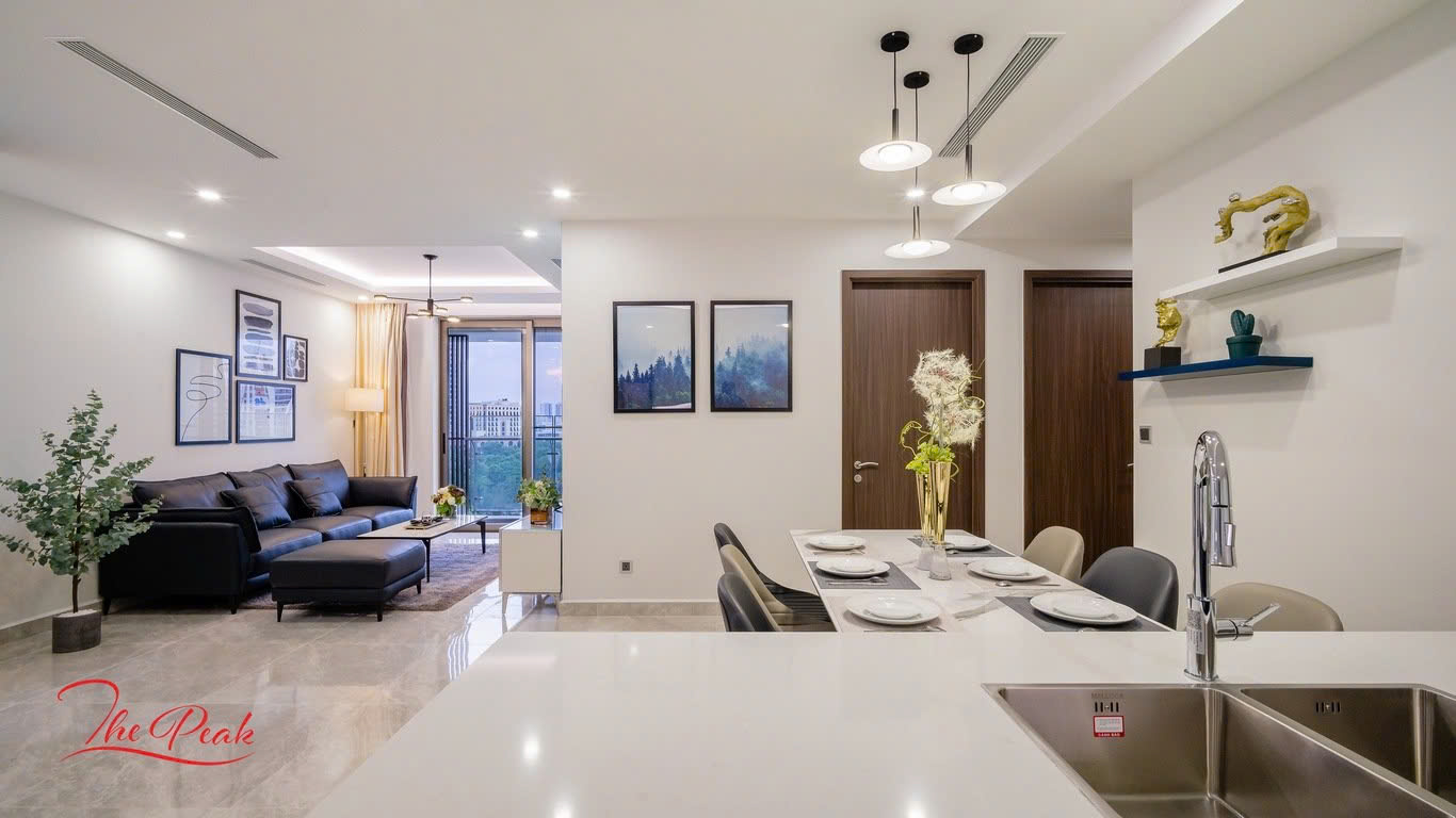 Căn hộ có diện tích 124m², thiết kế tối ưu với 3 phòng ngủ rộng rãi, không gian sinh hoạt chung thoáng đãng và tràn ngập ánh sáng tự nhiên. Toàn bộ căn hộ được hoàn thiện full nội thất cao cấp, phong cách hiện đại, tinh tế, chỉ cần xách vali vào ở.