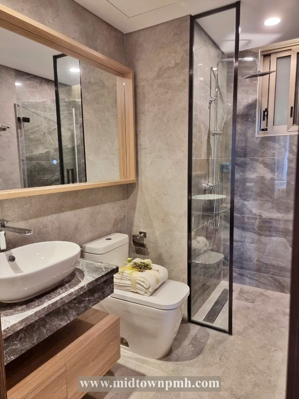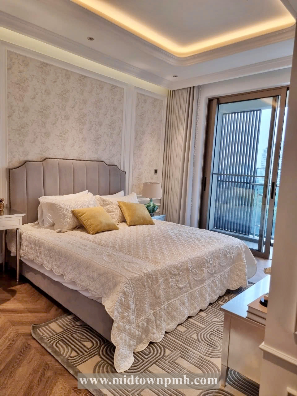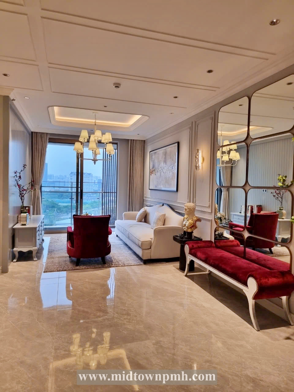 Cho thuê căn hộ Midtown The Peak nội thất cự kỳ đẹp. Tọa lạc tại vị trí căn góc với view nhìn sông và công viên nội khu.
