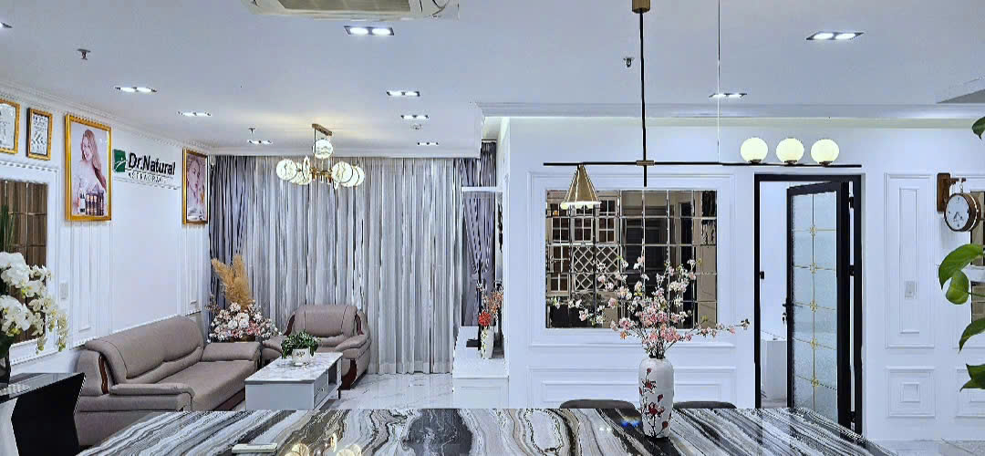 Với diện tích lớn 129m², căn hộ được thiết kế 3 phòng ngủ rộng rãi, bố cục khoa học, phù hợp cho gia đình, chuyên gia nước ngoài hoặc khách thuê dài hạn yêu cầu không gian sống thoải mái. Phòng khách rộng, trần cao, nhiều cửa kính giúp đón ánh sáng tự nhiên và gió sông mát mẻ suốt cả ngày.