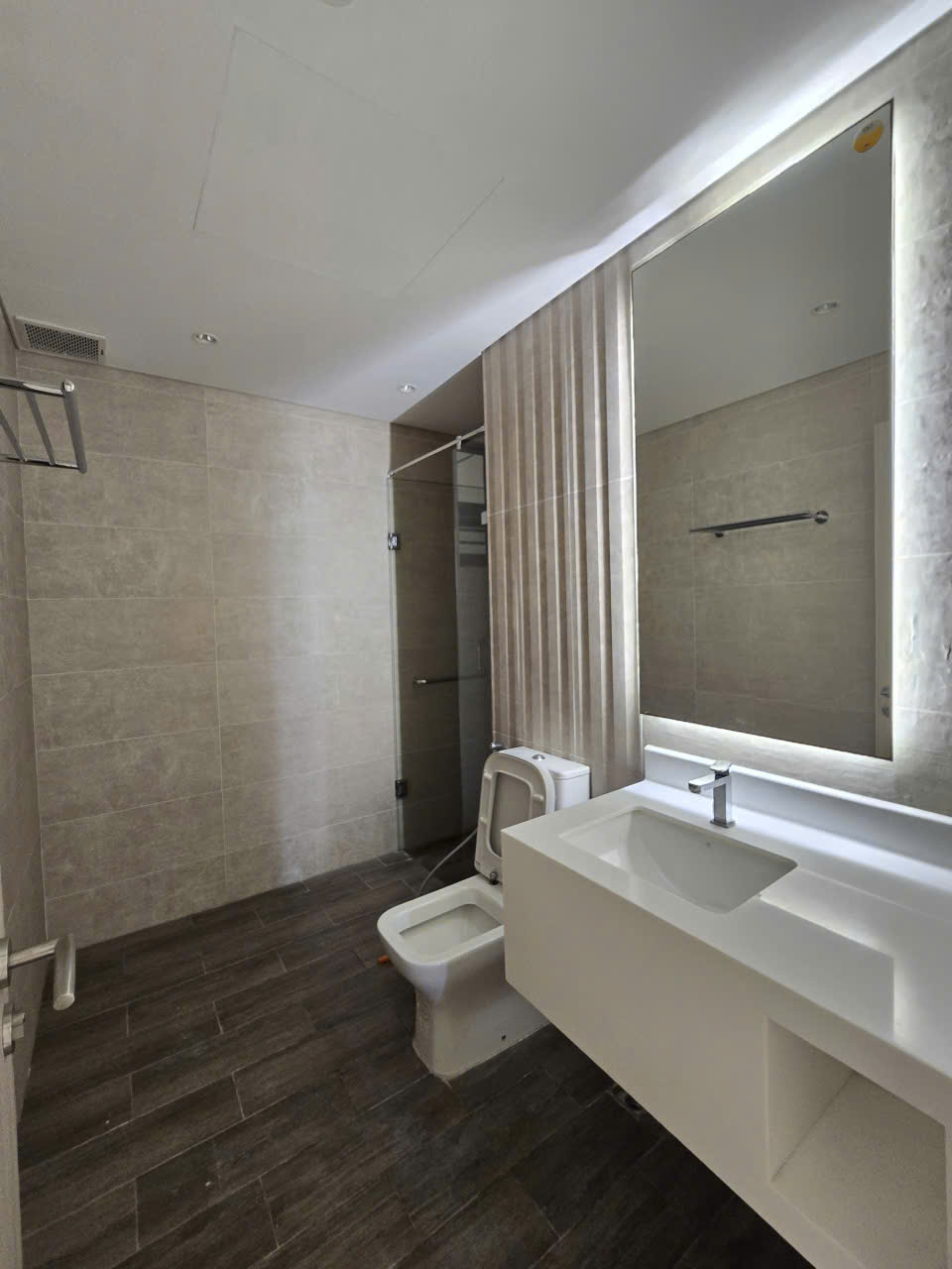Đây là căn hộ hoàn toàn mới, brand new, chưa từng có người ở, đảm bảo tình trạng sạch sẽ, nội thất mới và chất lượng hoàn thiện cao. Không gian được thiết kế theo phong cách hiện đại – tối giản, sử dụng tông màu sáng, sàn đá marble cao cấp, tạo cảm giác rộng rãi và sang trọng.