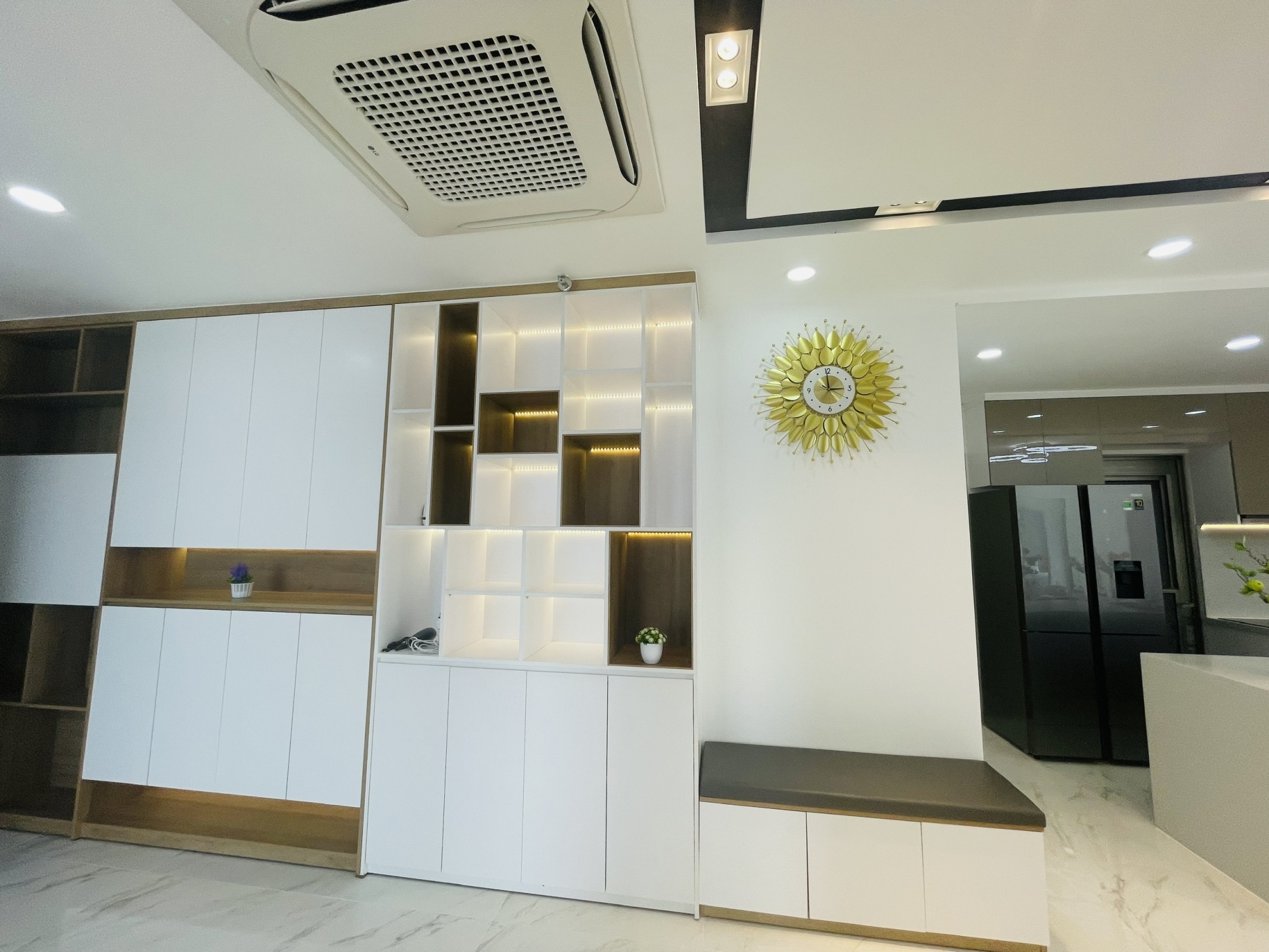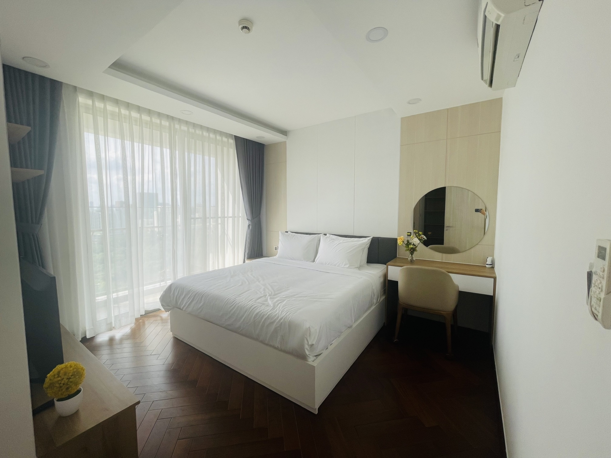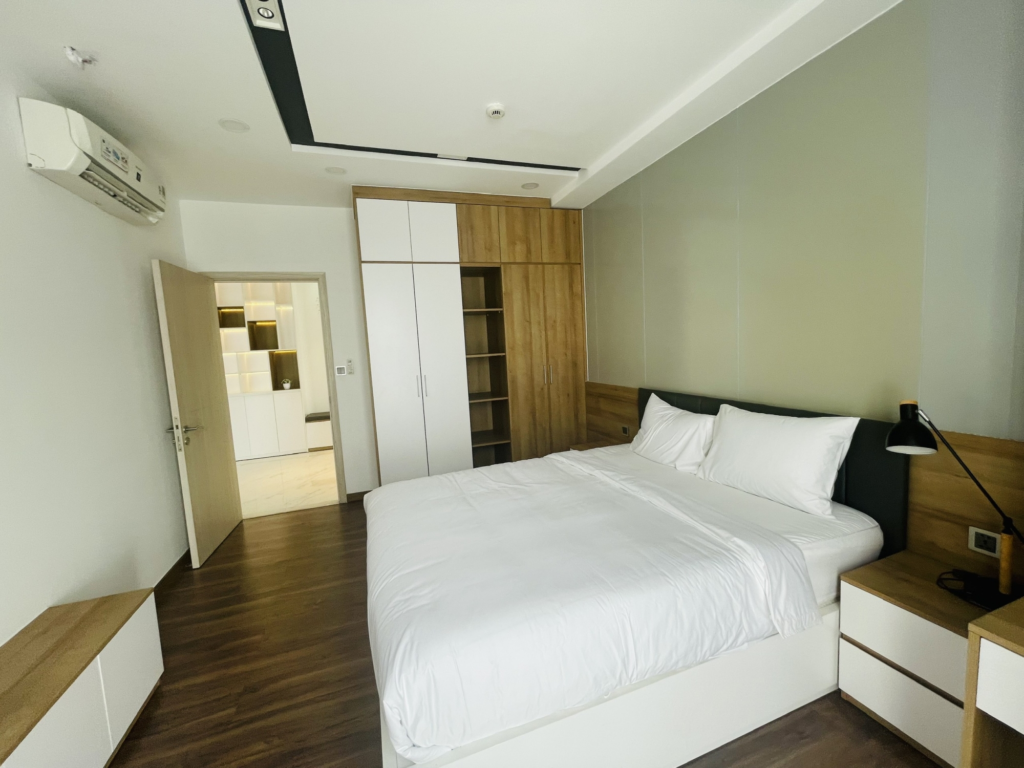 Căn hộ gồm 3 phòng ngủ rộng rãi cùng 1 phòng giúp việc riêng biệt. Các phòng ngủ đều có cửa sổ thoáng, đảm bảo ánh sáng và sự riêng tư. Nội thất hoàn toàn mới, thiết kế đồng bộ theo phong cách hiện đại, khách thuê chỉ cần dọn vào ở ngay.