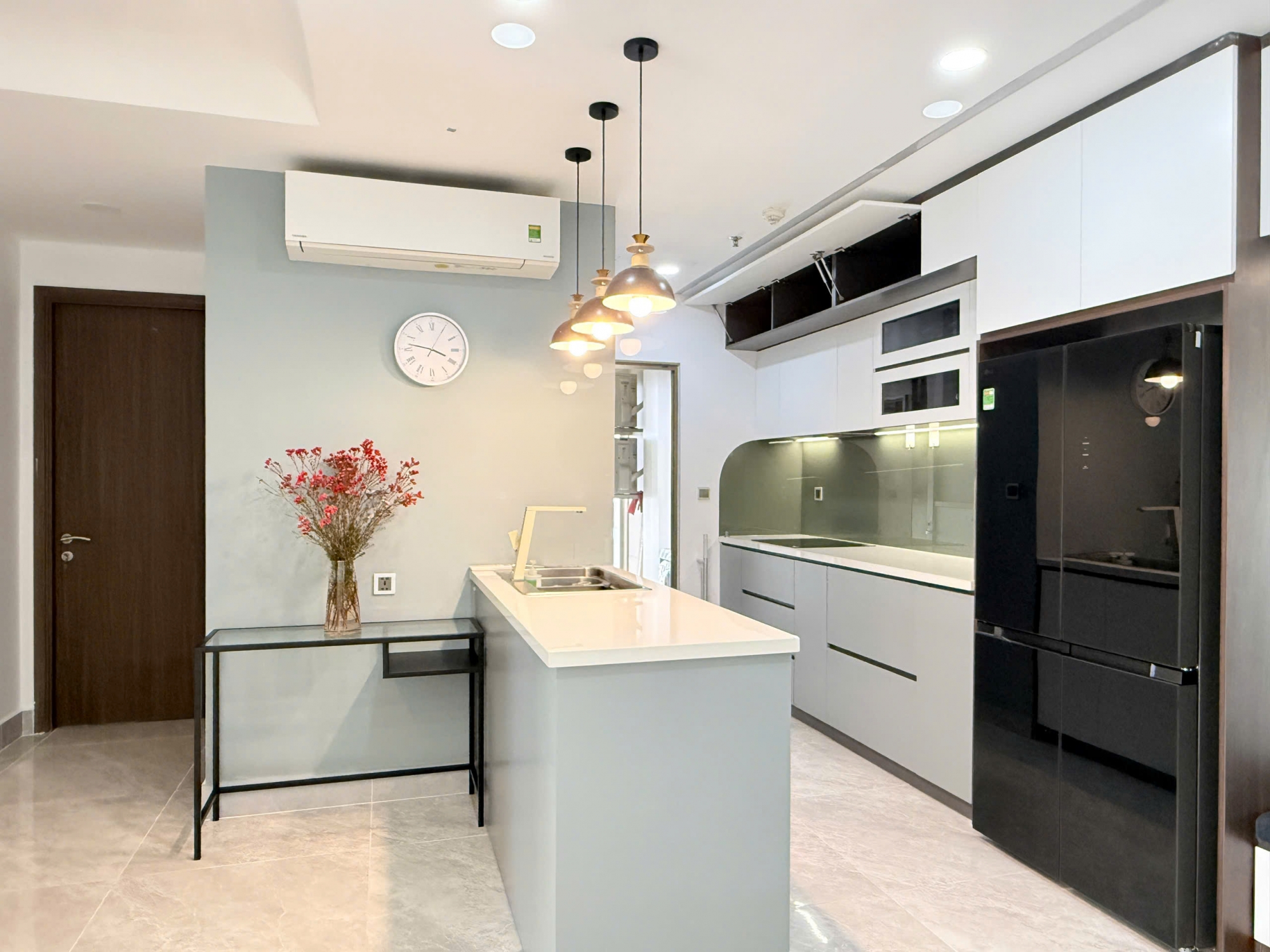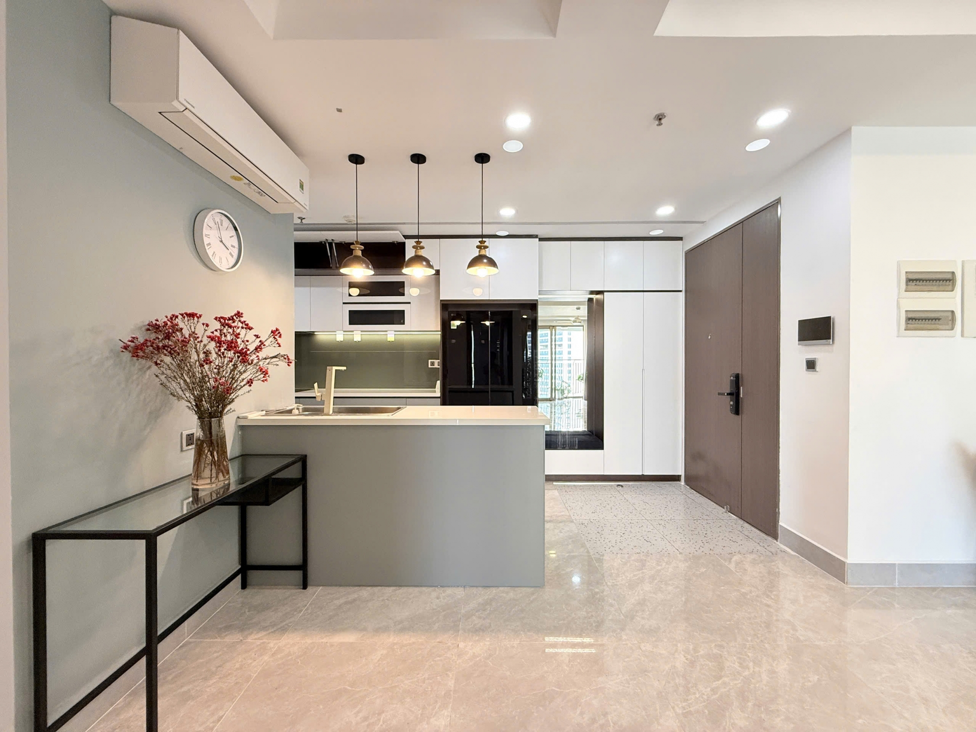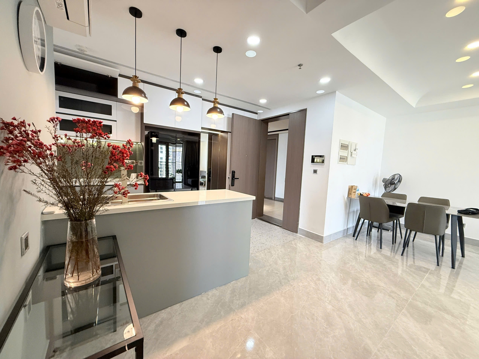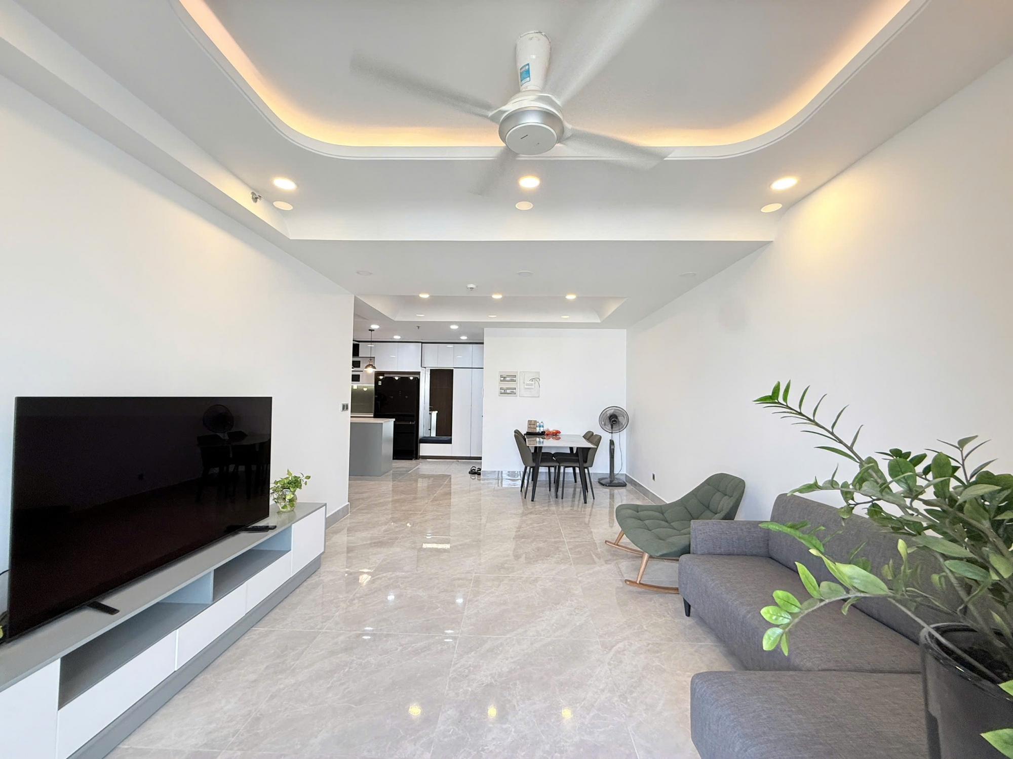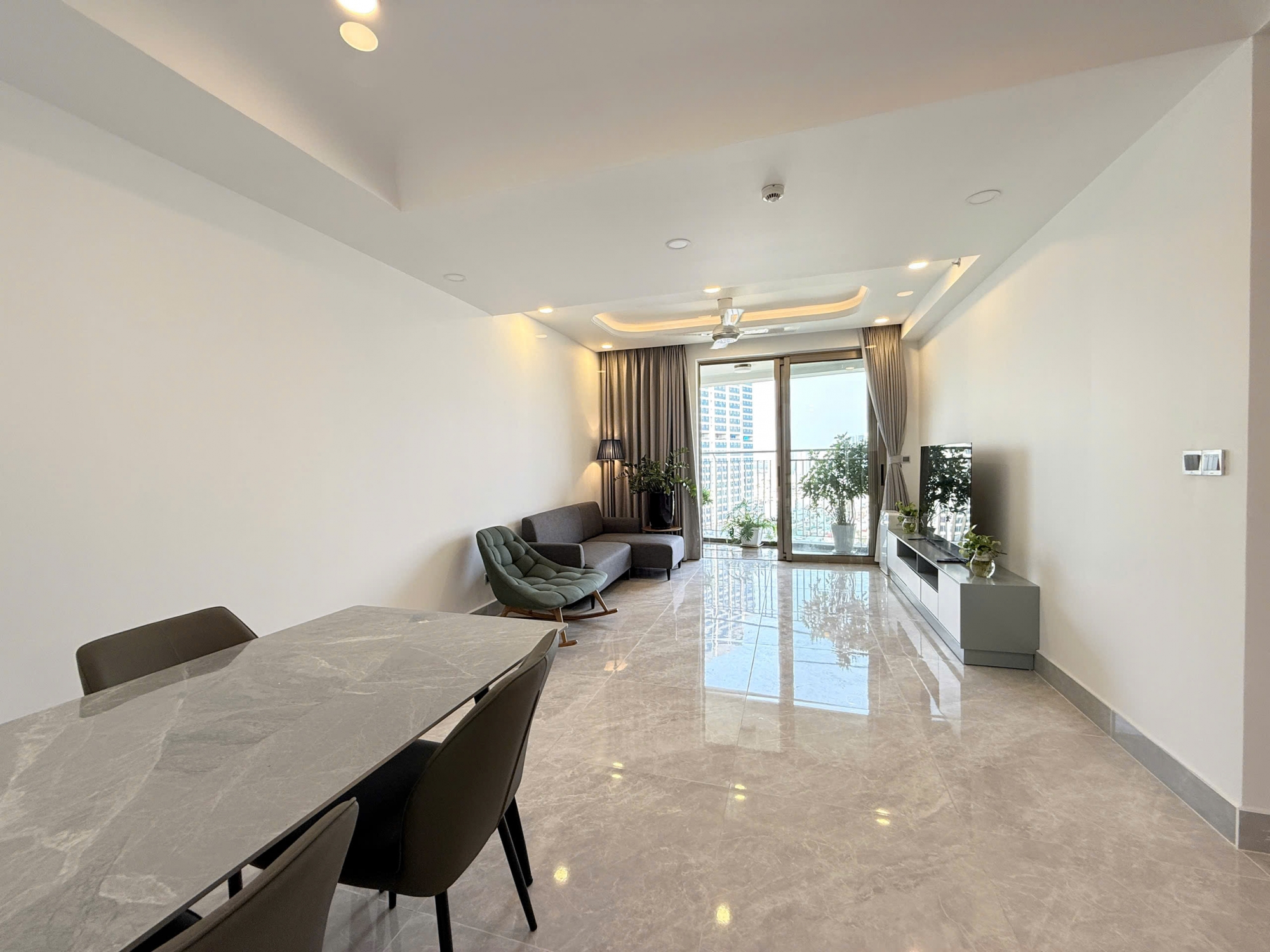 With a generous area of 103 sqm, the apartment features 2 spacious bedrooms and a well-planned layout that maximizes natural light and ventilation. The living room is bright and airy, offering an open view that brings comfort and relaxation. The dining area and kitchen are seamlessly connected, creating a functional and elegant living space.