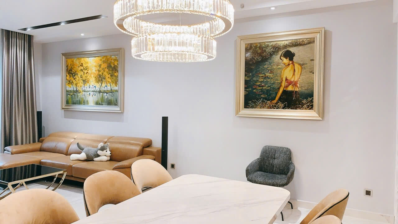 Với diện tích 120m², căn hộ mang lại cảm giác rộng rãi ngay từ khi bước vào. Khu vực sinh hoạt chung được thiết kế mở, phòng khách và bếp liên kết liền mạch, giúp không gian luôn thông thoáng và dễ sử dụng trong sinh hoạt hằng ngày.